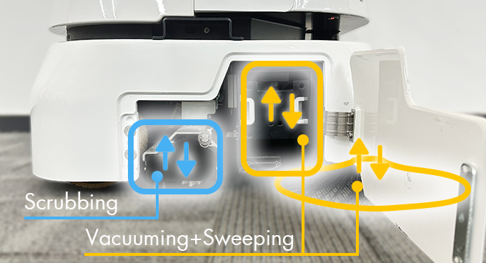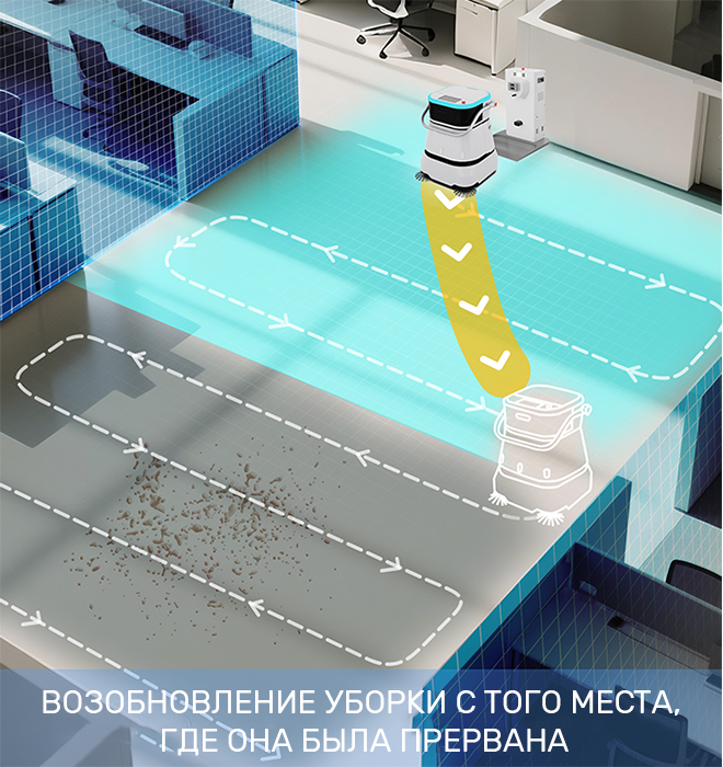 Механизм очистки с автоматической настройкой, не нуждающийся в ручной замене, оснащенный двухсистемной обработкой влажных и сухих загрязнений.